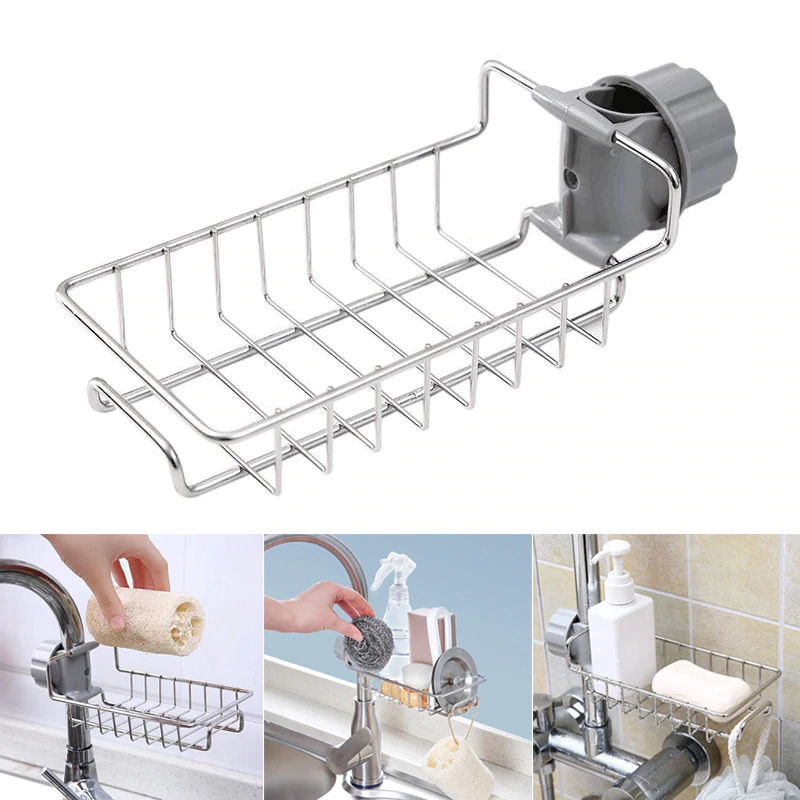 New Stainless Steel Faucet Storage Racks Adjustable Sink Rag Sponge Draining Rack Kitchen Bathroom